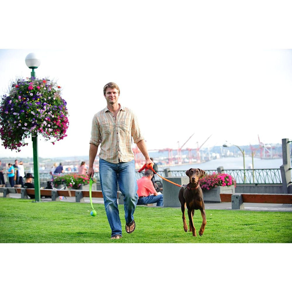 With a little practice, you can consistently throw the ball 2 to 3 times further. Features an ergonomic grip and no slobber, hands-free pickup. Compact size. Comes with one Chuckit! Tennis Ball. Use with all medium-sized 2.5 inches Chuckit! balls. Made in the USA.