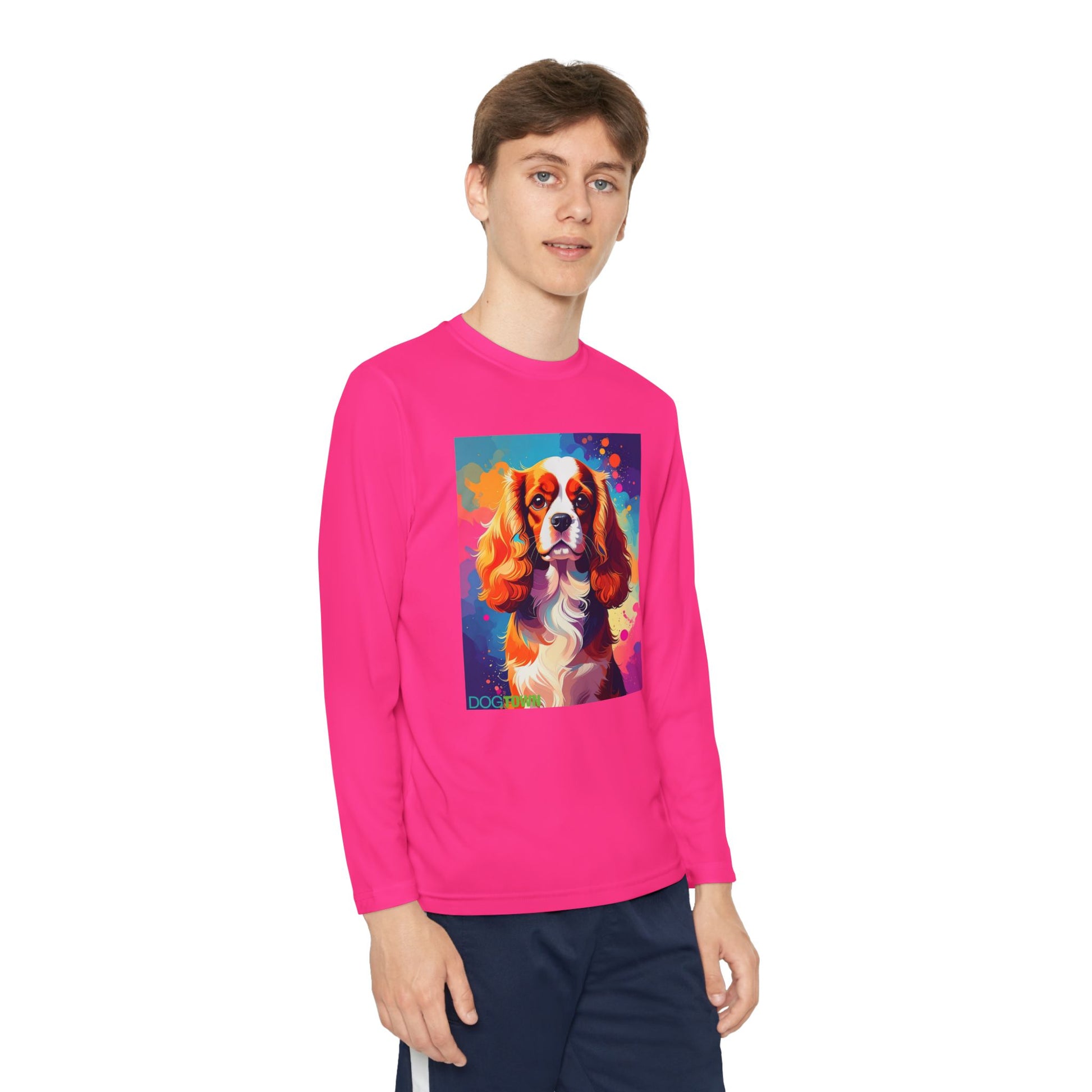 Pup Art Canvas - Kid's Sport Long Sleeve Tee (Cavalier King Charles Spaniel)