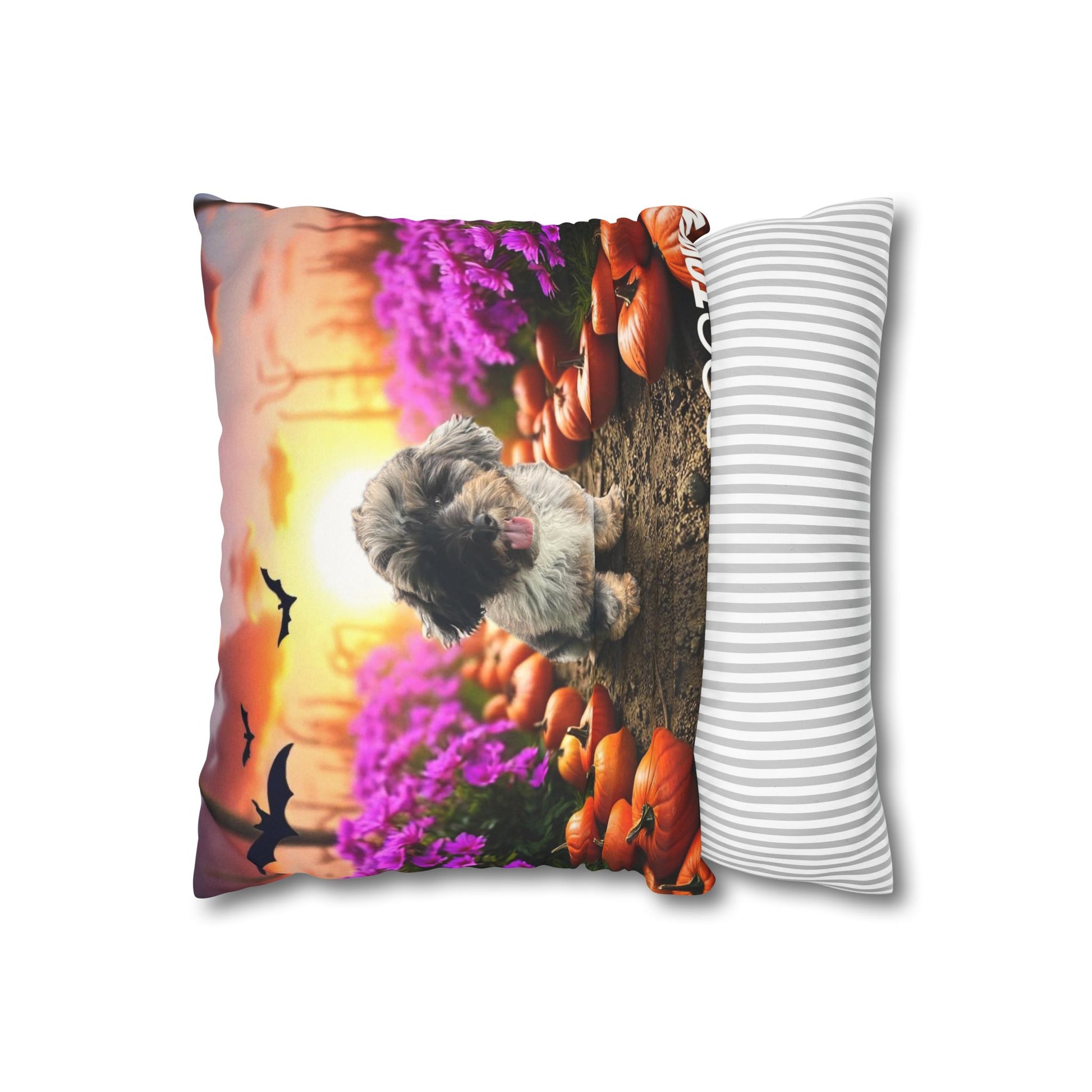 Enhance your home décor with this beautifully designed faux suede square pillowcase. Crafted from 100% faux suede, this pillowcase is not only animal-friendly but also exudes a soft, luxurious feel. The double-sided print showcases striking visuals, adding a pop of color and personality to any living space. Its concealed zipper offers a seamless look, making it a stylish addition to your sofa, bed, or reading nook. Perfect for cozy nights in and festive gatherings, this pillowcase is a great gift for pet lovers and home décor enthusiasts alike. Celebrate special occasions such as Halloween, housewarmings, or just because, with this charming accent piece that brings warmth and a touch of whimsy to any room.