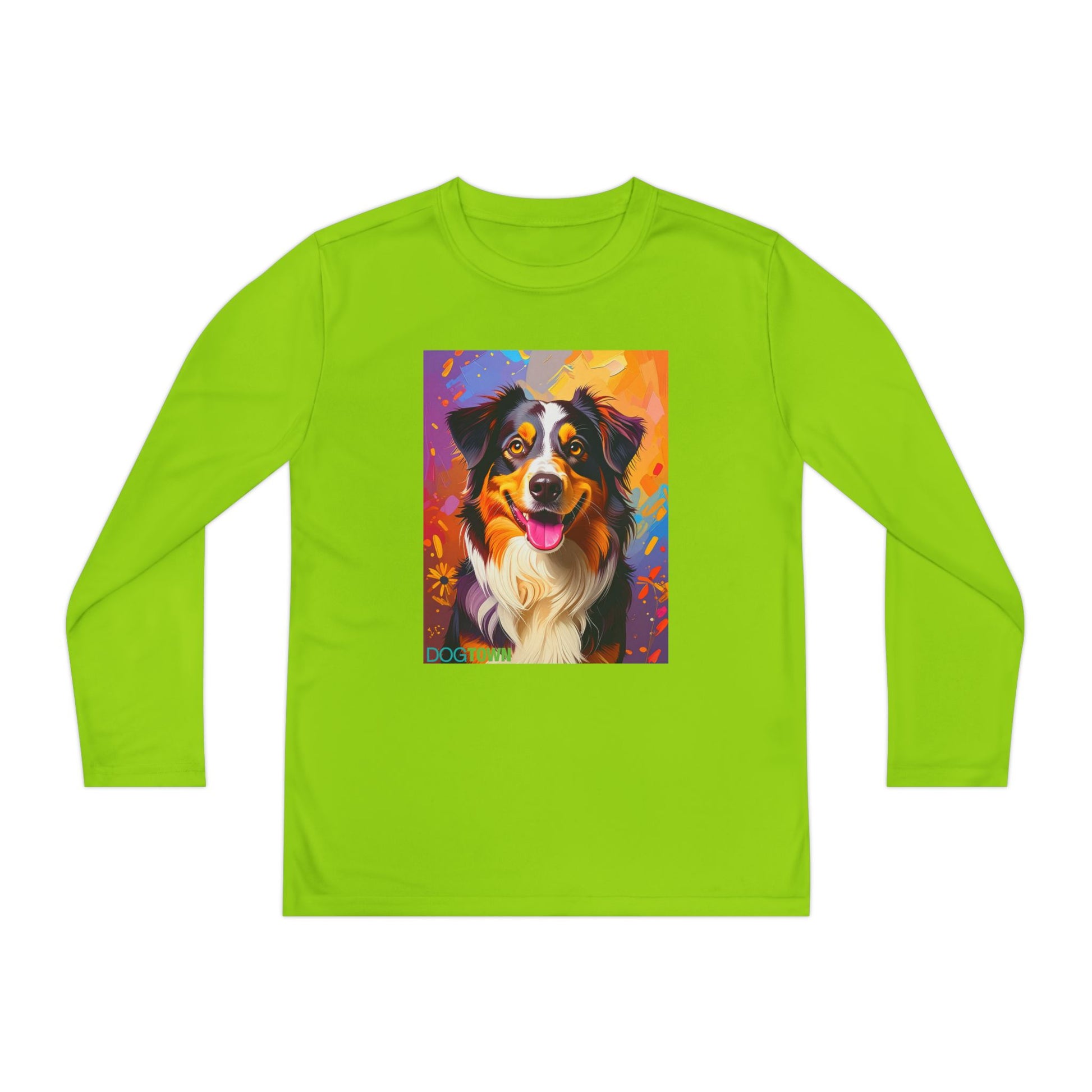 Pup Art Canvas - Kid's Sport Long Sleeve Tee (Australian Shepherd)