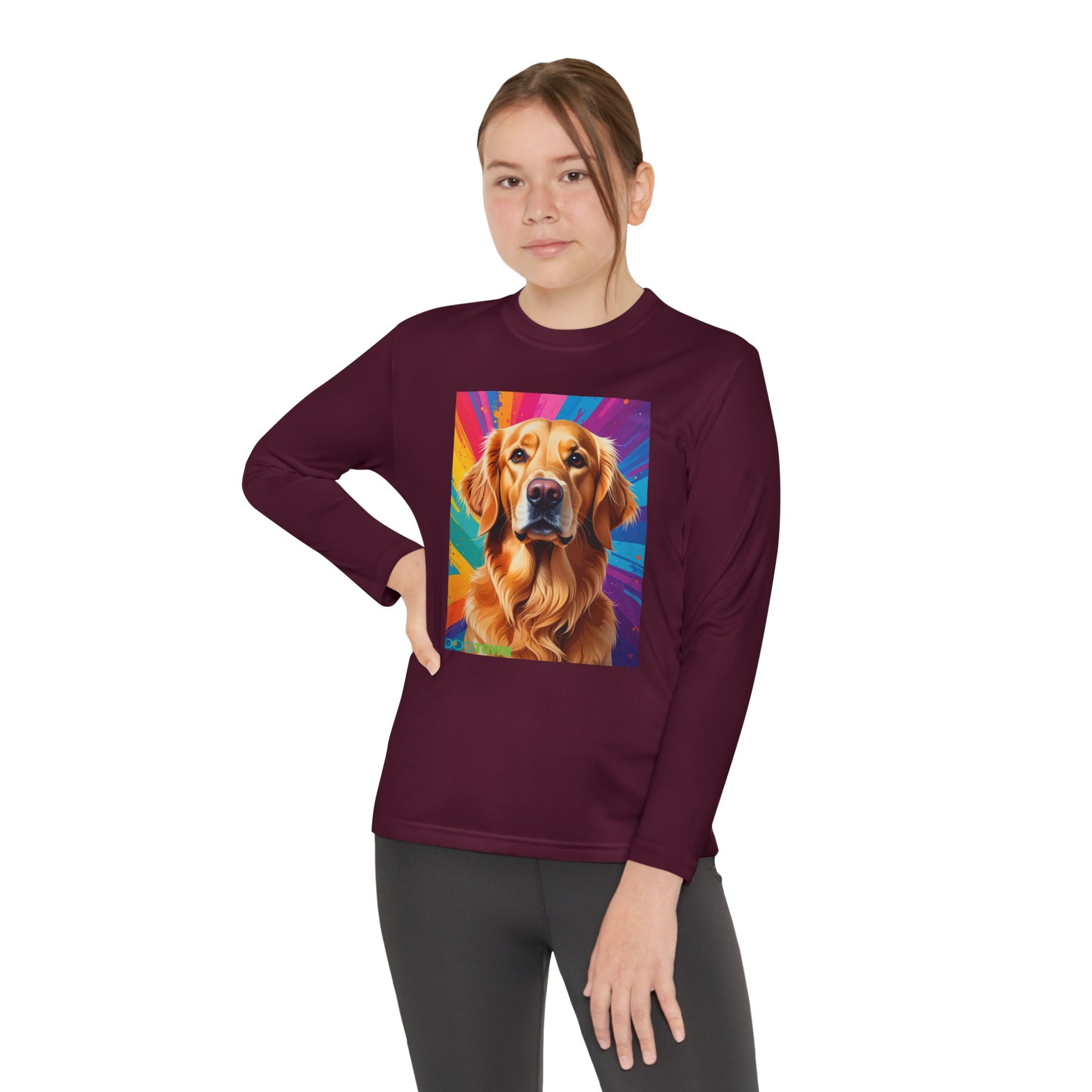 Pup Art Canvas - Kid's Sport Long Sleeve Tee (Golden Retriever)