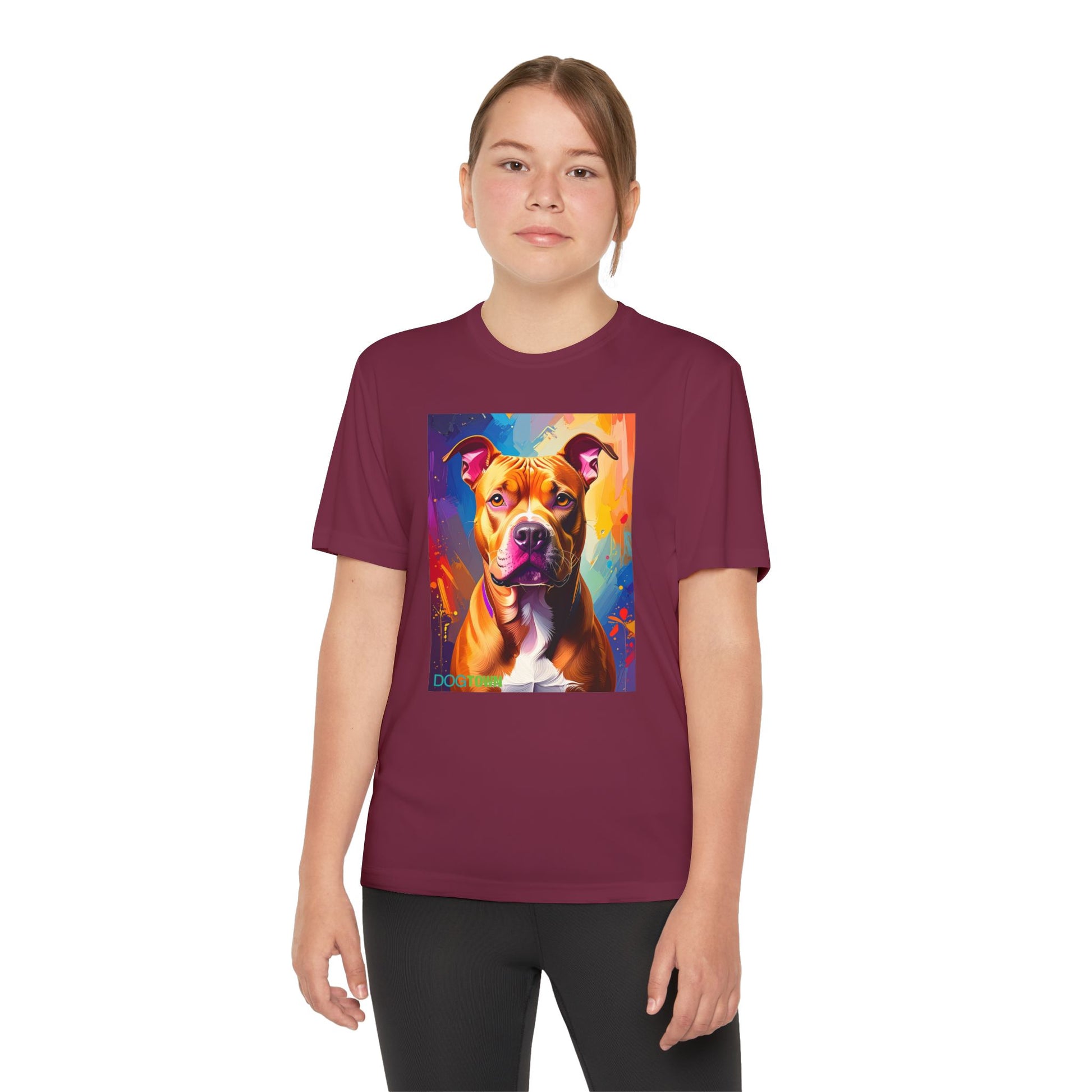 Pup Art Canvas - Kid's Sport Short Sleeve Tee (Pit Bull)