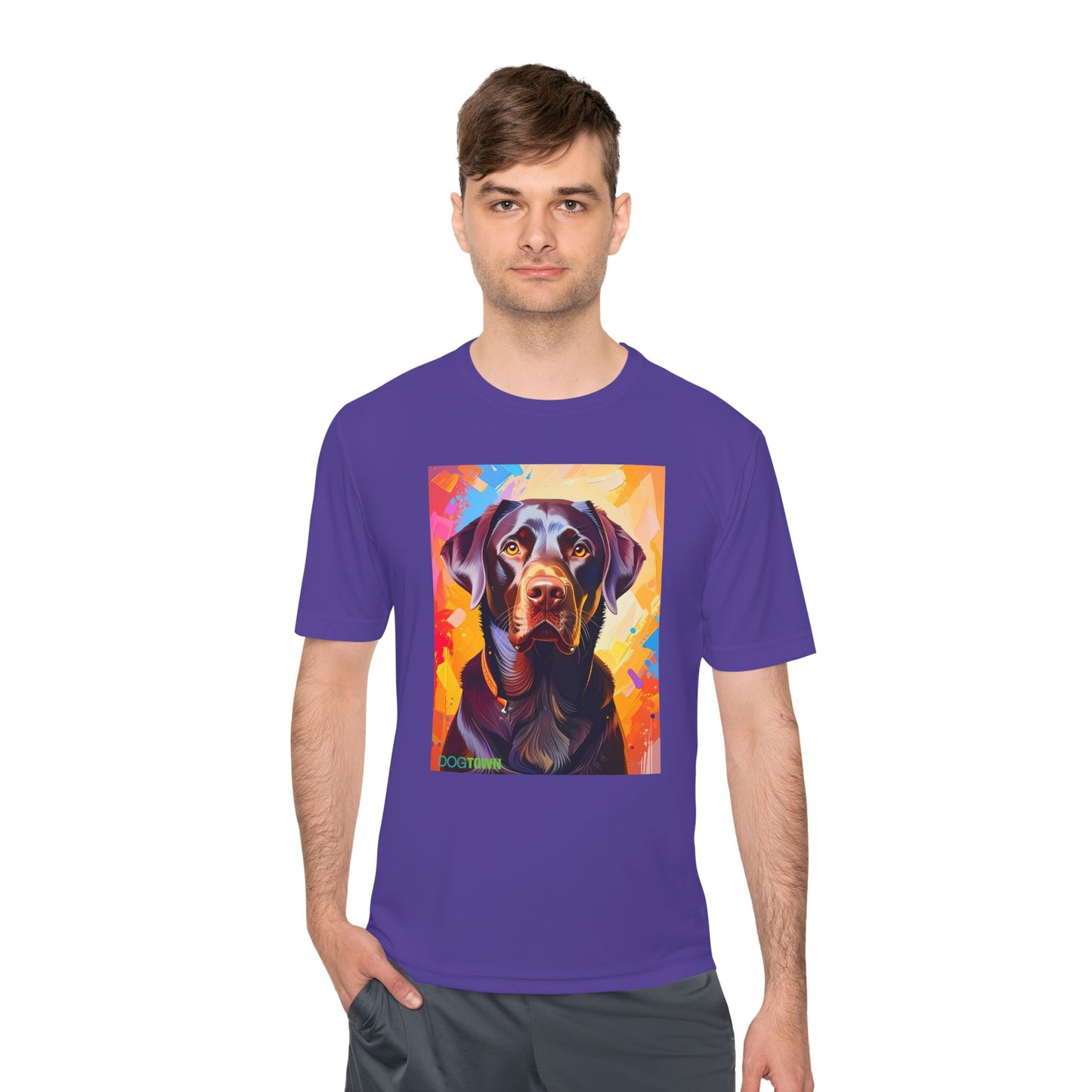 Pup Art Canvas Unisex Moisture Wicking Tee (Chocolate Lab)